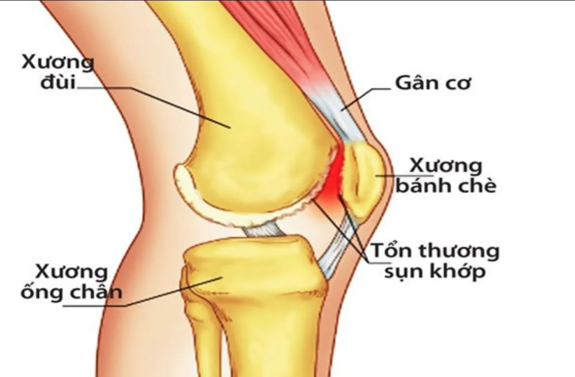 Khi các tế bào sụn bị tổn thương, lớp sụn bao bọc mặt khớp bị mòn dần, trở nên thô ráp dẫn đến khớp xương cọ xát với nhau, thêm nữa có quá trình viêm xảy ra nên gây ra tình trạng Nhức mỏi đầu gối, sưng viêm khớp gối, ảnh hưởng xấu đến sự vận động của chân.